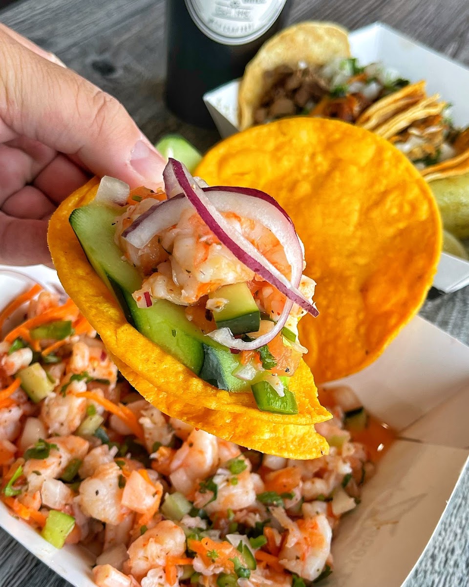 The food is really good here one of my favorite beside the fish taco and the potato taco and the carne asada wet burrito lol is their Campechana omg it is awesome and very filling fresh tasting always on point. The truth is I haven't ordered any thing that I can say wasn't great it's all good here one of my favorite places to eat Mexican food. The atmosphere is hip bussing clean friendly and good tasting. Service is great and fast.